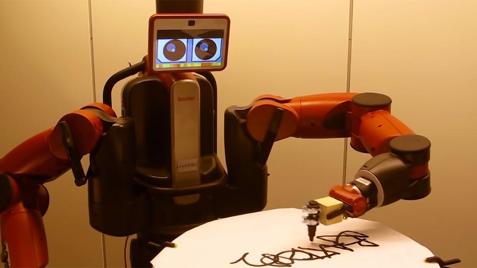 The Baxter robot has been taught to write its own name in a stylised graphic form known as a tag - which first emerged in late-1960s New York - and is being taught to reproduce other graffiti tags using the same types of movements that a human would use for the skilled task.