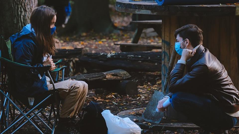 Students Amelia Belam and Tancredi Lo Cascio on Goldsmiths’ MA Filmmaking programme, on location rehearsing for graduation film Without You, which was filmed using the new Covid-19 Guidelines for HE and FE productions