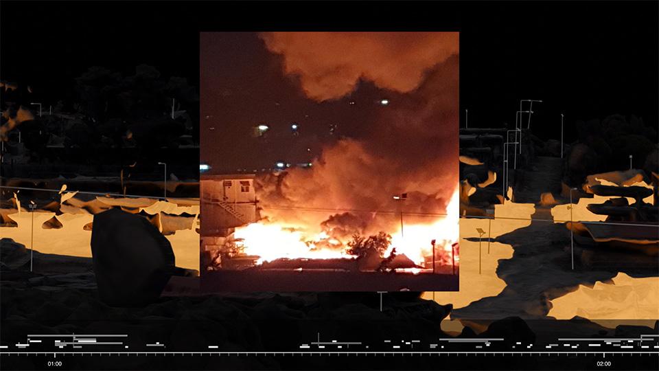 Stefanos Levidis, FA/Forensis’ lead researcher on border violence and migration, said: “Our investigation lays bare the structural failings of the EU’s ever-expanding carceral archipelago in the Aegean, and those of the operational and juridical infrastructure assembled to enforce it. Drawing mainly from evidence produced by asylum seekers recording their itinerant possessions going up in flames, this detailed digital reconstruction of the fire scrapes the ashes of Moria in search of justice, memory, and accountability.”