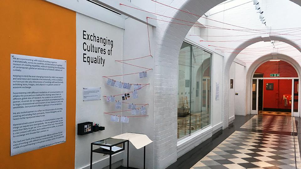 An exhibition entitled Exchanging Cultures of Equality focused on the materiality of communication, featuring objects, images and reflections from project members. Using postcards and electronic networks, the exhibition explored the processes of exchanging "cultures of equality” transnationally across the six teams.