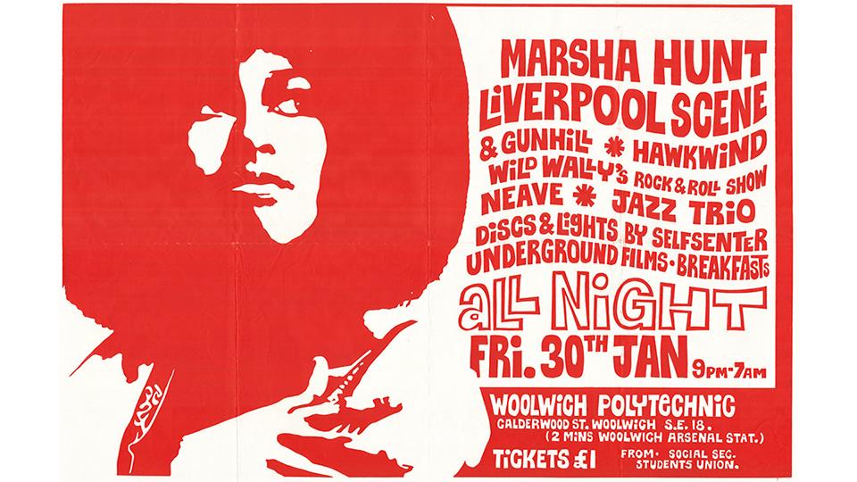 Rediscovered 1960s and '70s concert and club posters decorate the walls of Goldsmiths, University of London this March, taking visitors back to an era when the biggest names in rock and folk played London’s Students’ Unions.