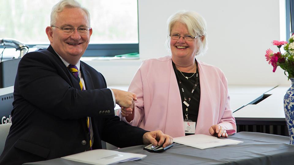 Goldsmiths’ Warden Patrick Loughrey and Lewisham Southwark College Principal Carole Kitching signed a progression agreement on Thursday 16 June 2016 at an afternoon event on Goldsmiths’ New Cross campus.