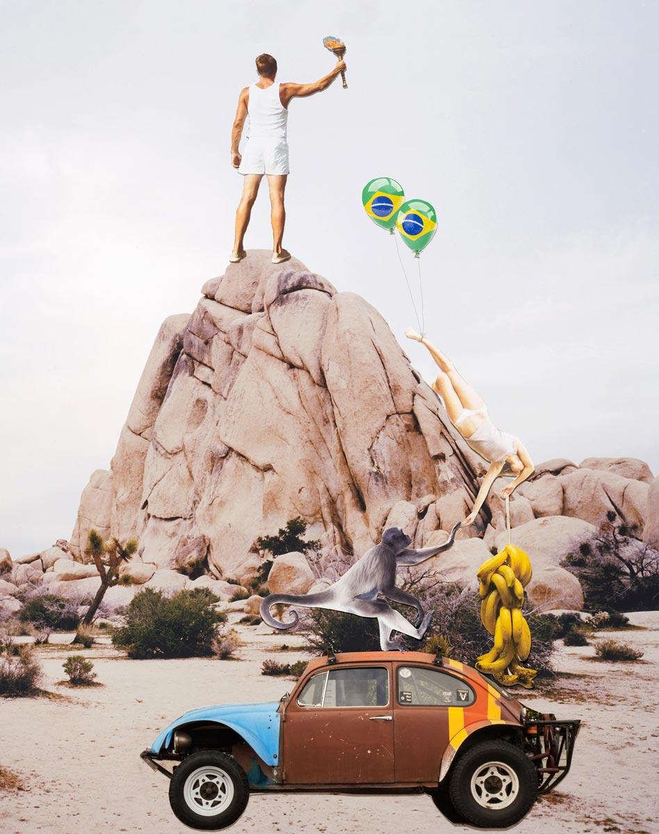 In a playful nod to the buoyant energy of the 2016 Olympic host country, the balloons bear the design of the Brazilian flag. Taylor-Johnson shot the craggy desert background on location in the US, giving an American twist to Rio’s iconic Sugarloaf Mountain.
