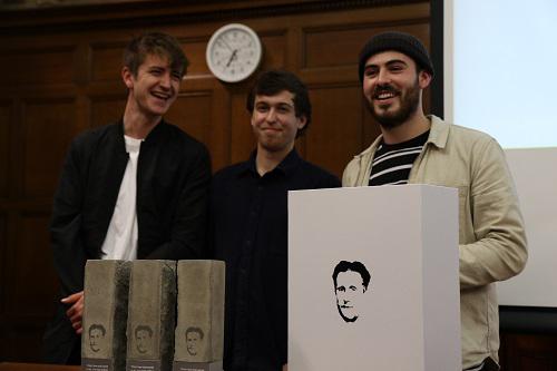 At a ceremony on Thursday 26 May, George Orwell’s son Richard Blair presented each winner with a striking and unusual trophy exclusively designed and made by three second-year Department of Design students: Tom Morgan, Archie Harding and Panagiotis Tzortzopoulos.