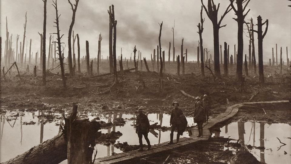 Soldiers crossing mud near Chateauwood. Why is Irish involvement in Passchendaele now forgotten? Photo: IWM