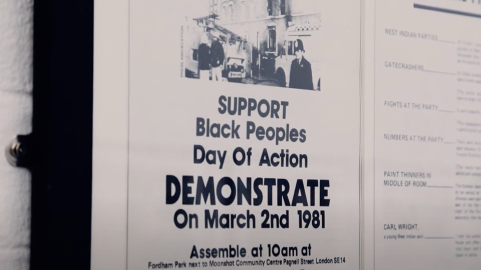 A poster for the 1981 Black People's Day of Action, displayed at the '13 Dead, Nothing Said' commemorative exhibition at Goldsmiths in 2017