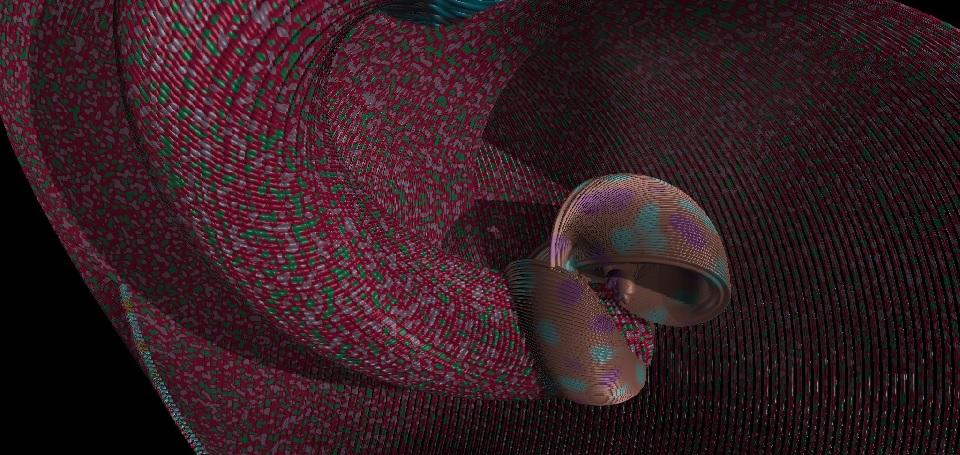 “One of Mike’s PhD students had been a big fan of my work. A lot of the structures that we’re using resemble the way that proteins are bolted together. So this sort of crazy art system for creating evolutionary art forms does have some similarities to the natural world. For example, beta barrel -protein structures have some of visual and geometrical similarity to my horn-web forms.