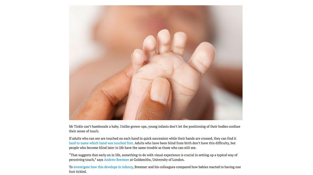 From Daily Mail and New Scientist reports on how babies sense touch, to our Head of Fine Art's top tips for students in the Guardian, here's a round-up of the latest headlines.