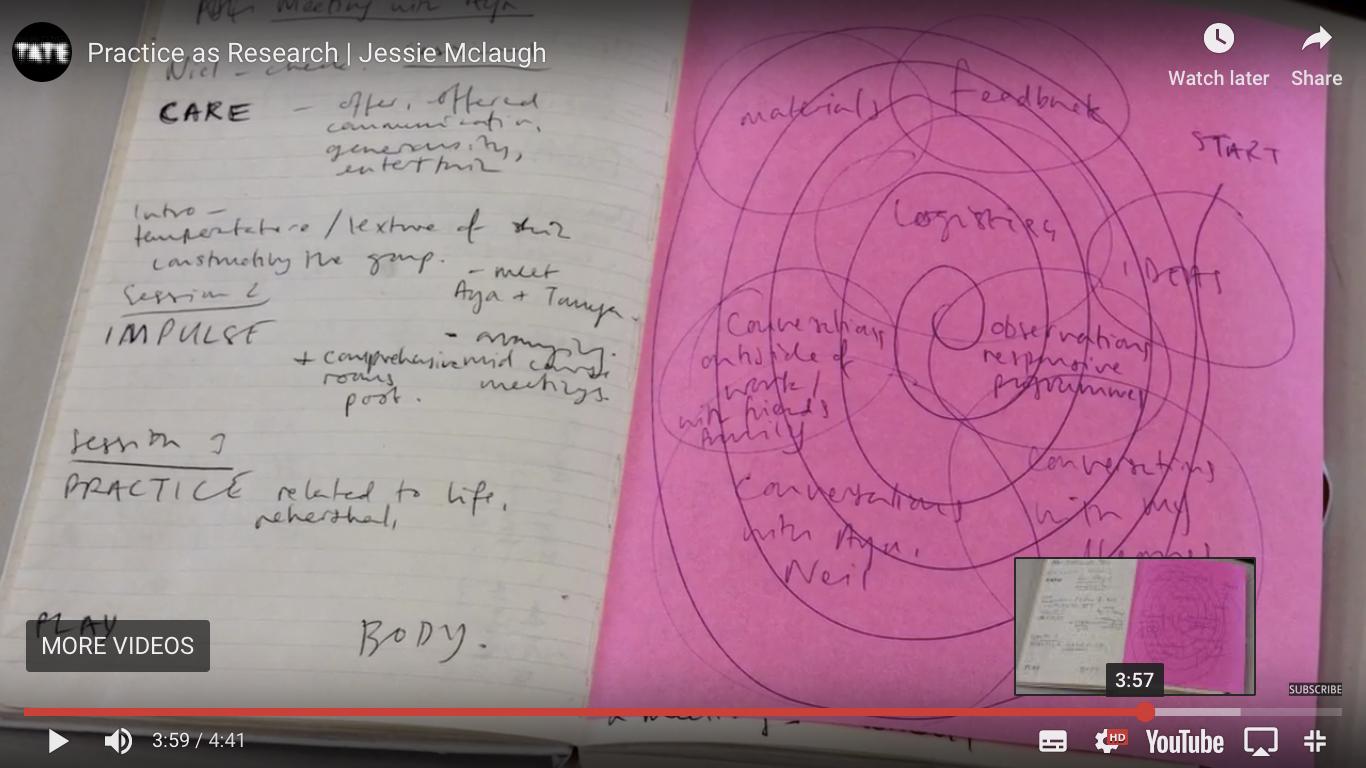 Screenshot of a Tate video titled 'Practice as Research' playing on YouTube