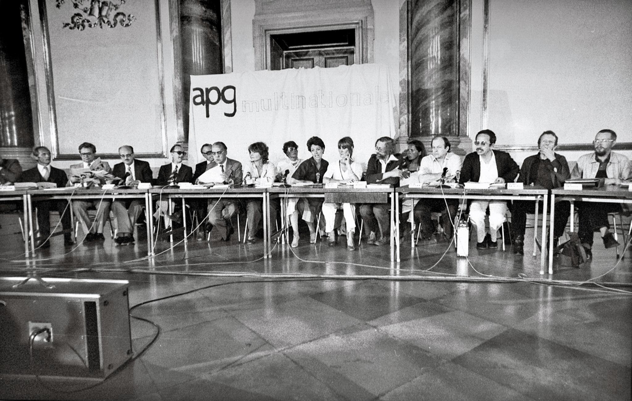Panel discussion “Kunst als soziale Strategie in Organisationen”, Museum Moderner Kunst, Palais Liechtenstein, Wien, 1979, Courtesy Rolf Sachsse & Ros Sachsse-Schadt