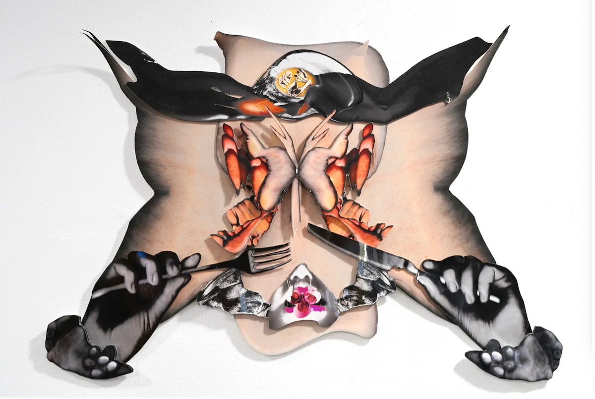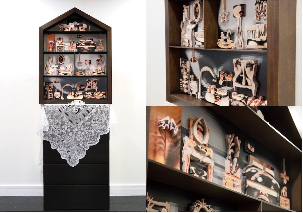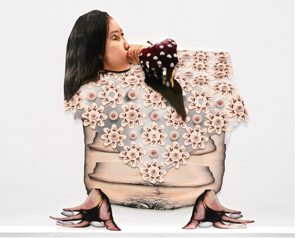 Using collage, video, and interactive installations, the works reveal the roles of female in family and society, highlighting the resulting limitations and objectification. Presented as a furniture store, the pieces are constructed from parts of the female body and sold at the lowest discounted prices, symbolizing the devaluation and objectification of women by society.