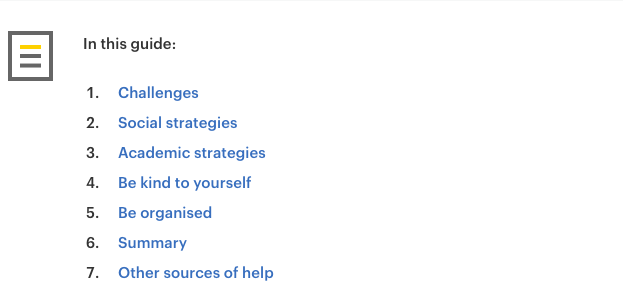 - Be used to link to content on other pages if listed under a second header 'On other pages'