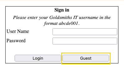 Go to mytimetable.gold.ac.uk and click on the 'Guest' button